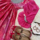 This dress comes as three pieces including a matching trouser and scarf.